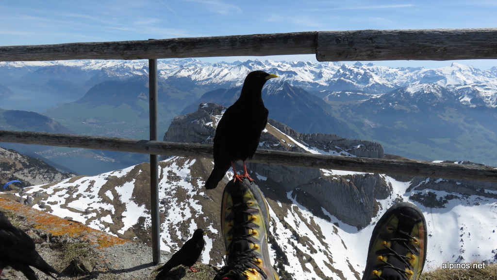 Die Temperaturen waren bereits angenehm, als wir bereits nach dem Mittagsläuten von Lütholdsmatt 1149m auf den Weg machten. Zügig hatten wir den Einstieg bei Tumli 1679m erreichten und genossen die herrlichen Kraxelzüge im festen, warmen Fels des Südgrates hinauf zum Tomlishorn 2128m. Die Dohlen waren offenbar recht hungrig und bekamen gerade noch wenig Besuch: frech turnten sie auf unseren Schuhen herum und es gelang ihnen sogar, ein Stück Kräcker zu klauen. Nun ja, war mir grad eh zu trocken. Durch die Südflanke von P.2013 stiegen wir hinunter nach Tumli und hatten bald darauf den Ausgangspunkt wieder erreicht. Lieben Dank an D.W. für die gut gelaunte Begleitung!