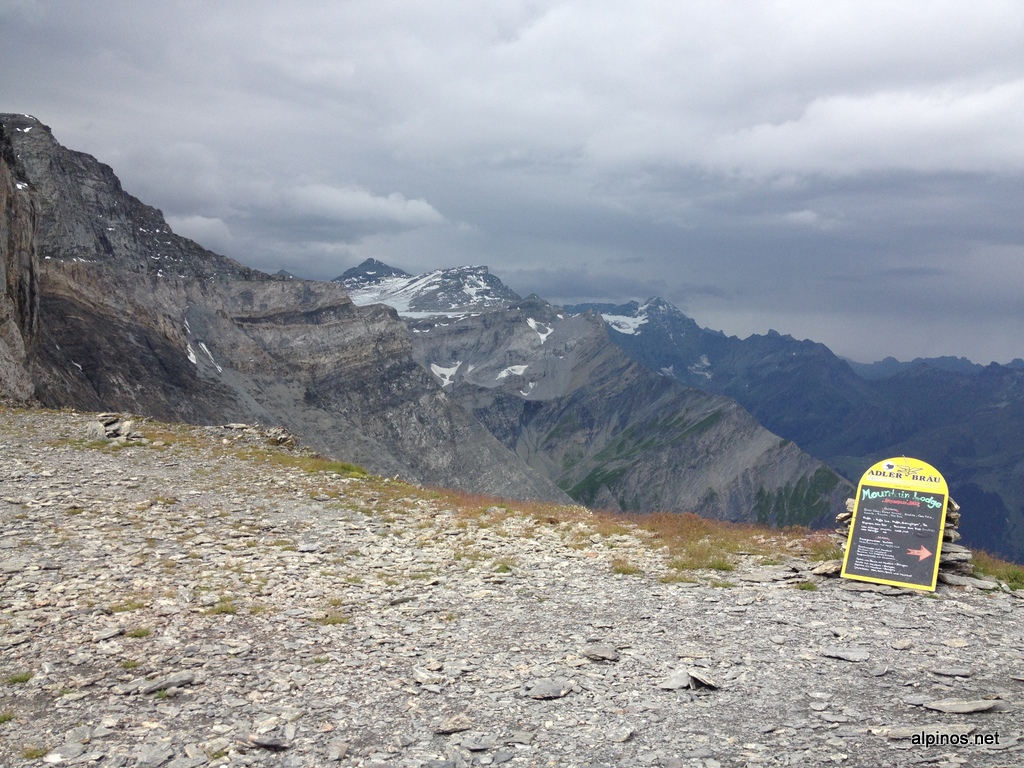 Eigentlich hatten wir nach der Besteigung der Dent Blanche noch zwei weitere Tage im Val d’Herens geplant. Wegen des unsicheren Wetters waren wir aber zur Erholung wieder nach Hause gefahren und hatten den gestrigen Tag im Freibad verbracht. Gestern Abend war der heutige Vormittag dann noch ganz gut angesagt – als wir heute Morgen allerdings aus dem Fenster blickten, kam eine dicke Wolkenfront aus Westen herangezogen. Also erstmal gemütlich frühstücken, dem Regenradar-Orakel ein Gipfeli-Opfer dargebracht und dann losgefahren. Bei Einfahrt ins Glarnerland entlud sich ein Regenband gerade über dem Glärnisch-Massiv (vom Orakel so nicht gemeldet), bei Abmarsch in Elm-Töniberg 1037m dann kurz wieder Sonne (wusste das Orakel auch nicht). Warmer Fallwind bliess uns die Schweissperlen von der Stirn, während wir durch den Tschinglenbach-Tobel aufstiegen. Jetzt steil hinauf in zügigem Tempo bis zum Segnespass 2625m. Die leichten Wolken hatten sich mittlerweile zu einer dunklen, bedrohlichen Front zusammengeballt und hüllten die Berge im Westen ein; ein erster Regenschauer war zu uns unterwegs (ebenfalls nicht im Orakelspruch enthalten). Da der teils noch mit Schneeresten bedeckte Aufstieg zum Piz Segnas kein zügiges Vorwärtskommen versprach entschieden wir uns, hier das Training zu beenden und wieder abzusteigen. Zumal die dunkel Wolkenfront immer näherkam und einige Tropfen vom Himmel fielen. Dreissig Minuten später war alles wieder vorbei, heiter Sonnenschein und bald wurde es wieder warm. Im Tal genossen wir Espresso und beschlossen, das Gipfeli nächstes Mal selbst zu essen und dem Regenradar-Orakel höchstens eine saure Gurke zukommen zu lassen.