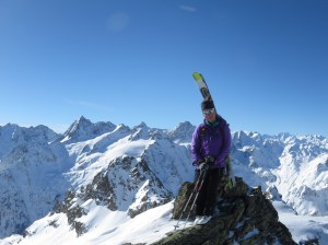 AlpinoF hatte sich nach langem Zögern endlich von ihrem aus Schottland mitgebrachten Rhinovirus verabschieden können und war soweit wieder einsatzfähig. Und so machten wir uns auf den Weg in den Frühling im Meiental. Um 7:20 Uhr starteten wir von der Barriere der Sustenpassstrasse – entgegen unserer Erwartung völlig alleine. Die Spur vom Vortag lief weiter auf der Strasse, wir bogen in den Färnigenwald ab und zogen eine Spur bis hinauf nach Rieter 1891m. Kurz darauf konnten wir auf eine alte Spur einbiegen, die von rechts herauf kam und ihr am Seelein vorbei und hinauf zum Seewenzwächten folgen. Unterhalb des Firnfeldes zum Gipfel endete die Spur; wir zogen nach links auf den Rücken und konnten noch ein paar Kehren legen, bevor wir die Skier an den Rucksack montierten. Es war ja nicht weit bis auf den Grat und die ersten Meter gingen im guten Trittschnee recht zügig. Dann verbrachten wir jedoch einige Zeit damit, uns die letzten ca. 8 Meter durch den hüfttiefen, schon recht weichen Schnee steil hinauf zu den Felsen zu wühlen. Der Schnee auf dem Grat war auch noch nicht völlig verfestigt und forderte einigen Krafteinsatz. Nach 4h30min standen wir dann endlich am Gipfel des Bächenstocks 3008m. Wir hatten einen herrlichen Rundblick auf das ganze Tal und sahen keine Menschenseele – eine Premiere im Meiental!