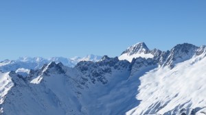 Nach kurzer Gipfelrast ging’s wieder hinunter zum Skidepot, vorbei an den anderen ca. 15 Berggängern, die eben – heftig ausgerüstet mit Helm und Steigeisen und Eisgeräten (!) – den Aufstieg zum Grat bezwangen. Es gab zwar bereits einige Abfahrtsspuren der vergangenen Tage, aber es hatte noch genügend Platz für eigene Schwünge durch den Presspulver. Oberhalb des Rückens zum Kartigel querten wir weit nach rechts hinaus und konnten so bequem ein recht breites Couloir hinab fahren. Kurz darauf erholen wir uns in der warmen Sonne am Parkplatz.