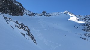 Besten Dank an U. für die perfekte Spur auf dem Gletscher und Grüsse an D.B., den wir nach langer Zeit wieder einmal in den Bergen trafen.