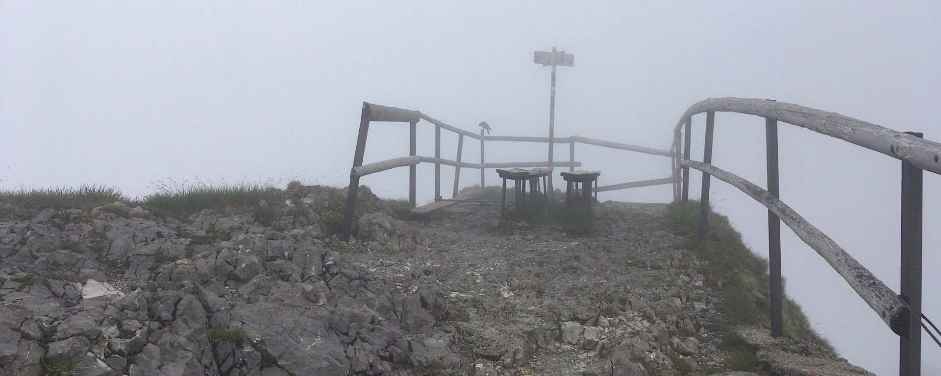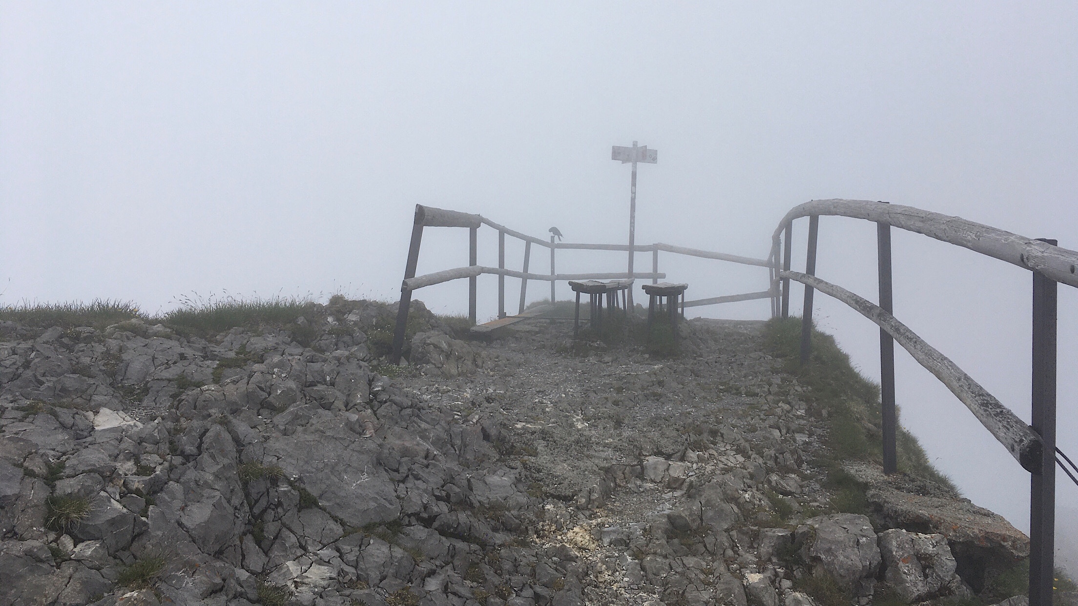 Nach einer kleinen Stärkung im Nebel, wanderten wir hinüber an den Fuß der Widderfeldstock-Ostwand. Auf dem Verbindungsgrat durften wir zwei grössere Gruppen junger Steinböcke bei ihren jugendlichen Spielen beobachten. Wir traversierten hinab zum Tunnel (heute teils etwas matschig) und gelangten kurz darauf zum Gipfel des Widderfelds 2076m. Über Feldnätsch und Märenschlag gelangten wir wieder zum Ausgangspunkt.