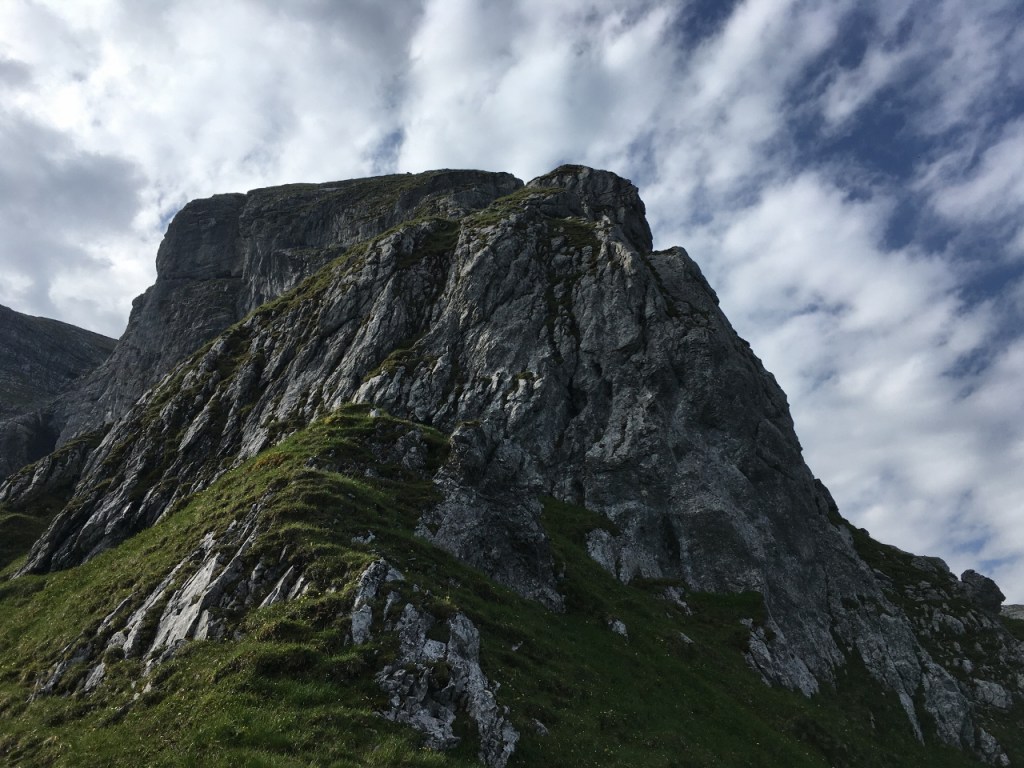 Wir hatten das alles ziemlich gut ausgetüfftelt mit den Gehzeiten und dem Wetter und erstaunlicherweise hat es ziemlich gut geklappt. Wir fuhren mit der Bahn um 7:30 Uhr von Engelberg hinauf nach Ristis 1599m und liefen von dort via Hintersack, Stafel, Steinig Stalden 1692m und Walenalp zum Walenegg. Hier verliessen wir den Wanderweg und stiegen auf dem Grasrücken bis hinauf zu den ersten Felsen. Meist auf der Gratkante kraxelten wir hinauf zum Rund 2266m. Nur für die kleingriffige und recht exponierte Kletterstelle III/IV- montierten wir unser kleines Seilchen. Über den Walengrat und weitere interessante Kraxelpassagen – teils in nicht ganz vertrauenswürdigem Fels – erreichten wir den Grossen Walenstock 2573m.