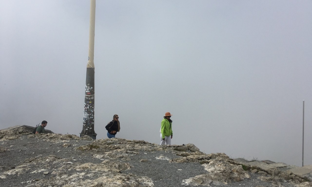 Wir bei meinem letzten Besuch gab’s auch heute leider kein Gipfelpanorama, nur ein paar Touristen, die wohl einiges Geld für die Sicht in den Nebel bezahlt hatten. Nach kurzer Rast liefen wir ich durch die Gallerie auf die Nordseite und via Nauen und Treichen hinab nach Alpgschwänd und Brunni. Merci an Anna B.!