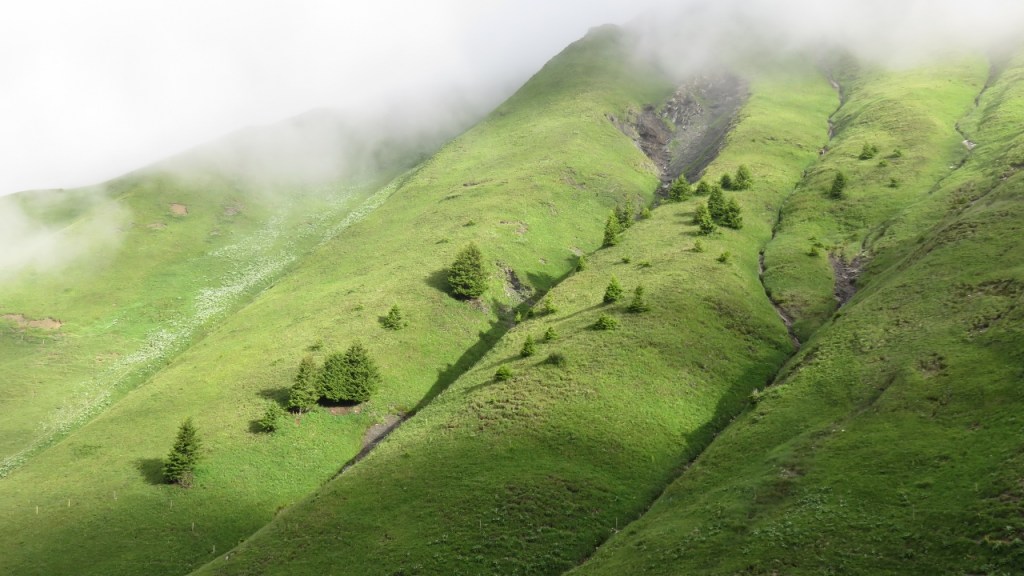 Um kurz vor sieben Uhr starteten wir vom Parkplatz oberhalb Tinizong und wanderten mit schwerem Biwakrucksack über Bartg hinauf zum Lai Tigiel (2h30min). Bei P.2454 deponierten wir unser Material und machten uns dann an den weiteren Aufstieg.