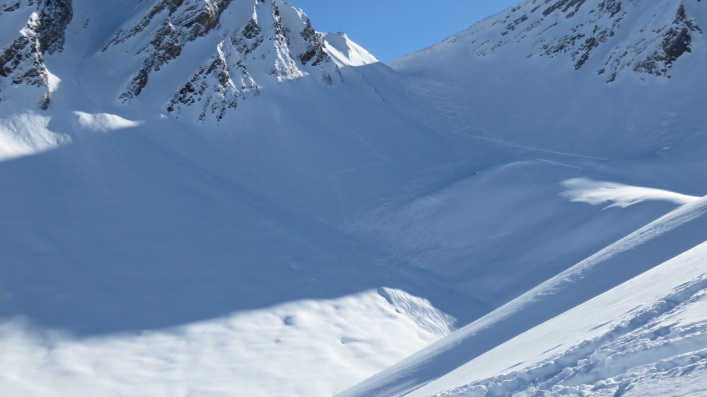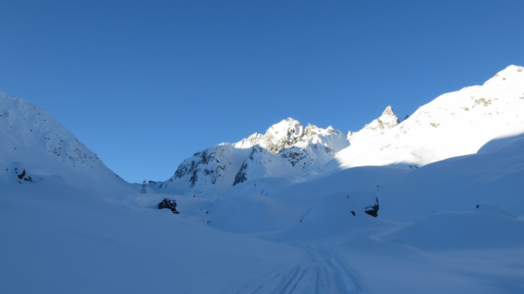 Da der Alpennordhang und die Zentralschweiz momentan bis auf die Gegen um Realp nicht wirklich mit viel Schnee beglückt wurde, stapeln sich die Tourengehen – mich natürlich eingeschlossen – auf der Alpensüdseite und dort u.a. im Bedretto. Gestern war am Pizzo Pesciora schon einiges los und auf „First Lines“ durfte man nicht mehr hoffen. Ich war gespannt, ob ich im Val Torta noch etwas nicht zerwühlten Schnee finden konnte…