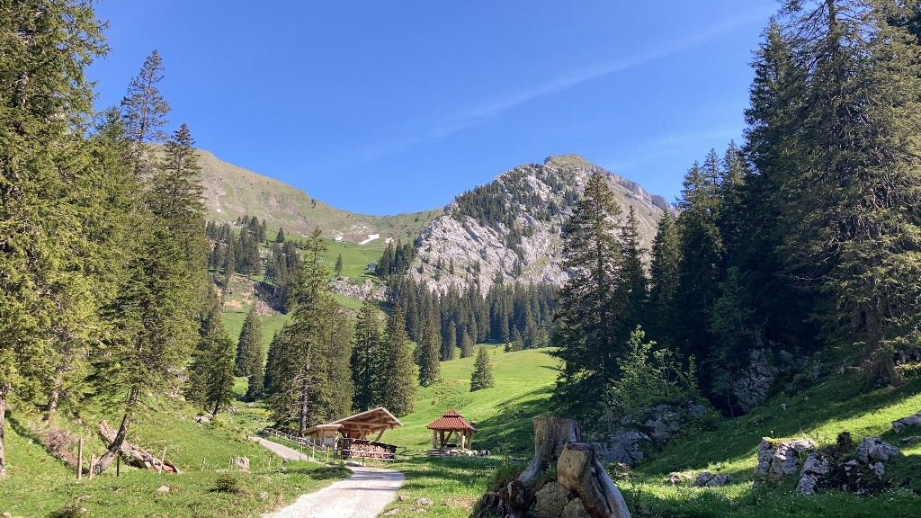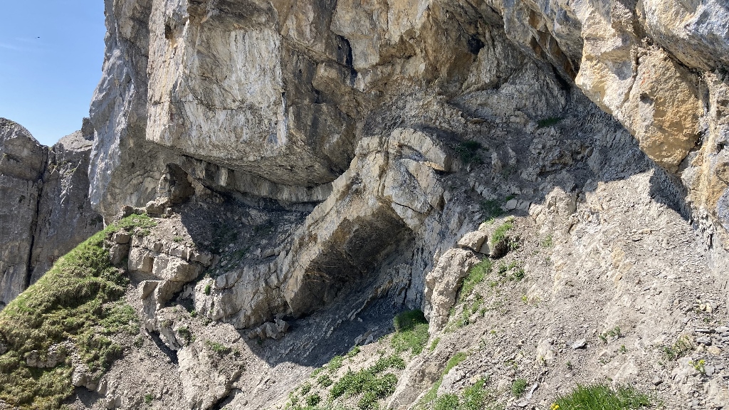 Nach kurzer Rast lief ich hinüber an die Ostwand des Widderfeld, querte entlang der Kante und über die Felsbrücke bergab und stieg durch den Stollen wieder hinauf. Dann folgte ich den hübschen blauen Markierungen hinab zum Birchboden und gelangte via Fräkmünt wieder zurück zum Ausgangspunkt.