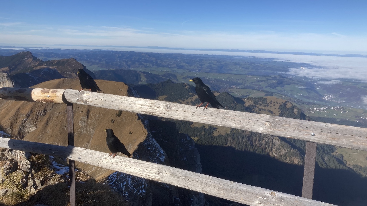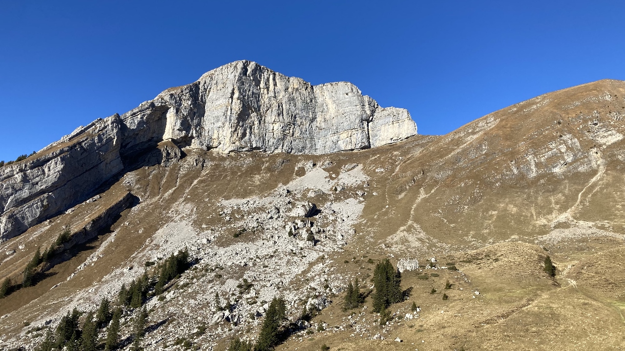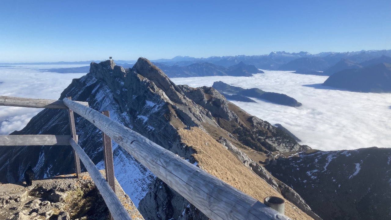 Ich war zuvor von Lütholdsmatt über Fräkmünt und den Südgrat auf das Tomlishorn gelaufen und gekraxelt und hatte dabei die warme Sonne und den Ausblick auf die schon verschneiten Berge genossen. Nach der Traverse und der Begegnung mit dem Steinbock lief ich unter den Wand des Widderfeldstock hindurch, durch das Stollenloch und hinauf zum Gipfel. Über Rottosse lief ich anschliessend wieder hinab zum Ausgangspunkt.