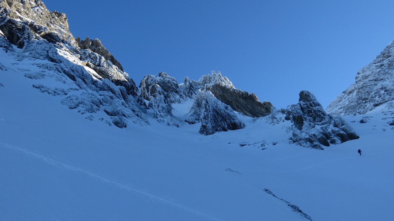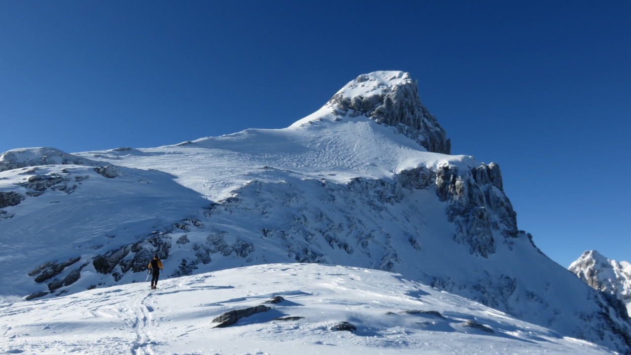 Bereits Mitte Januar auf den Gross Ruchen zu laufen ist schon etwas ungewöhnlich. Aber in Zeiten des Klimawandels muss sich der Alpindrache anpassen und kann auch gewohnte Vorstellungen überdenken. Wie schon im vergangenen Jahr wählte ich mit 6:55 Uhr einen späteren Ablaufzeitpunkt, damit ich nicht die ganze Ruchchälen hinauf spuren musste. Zwar musste ich etwas weiter draussen in Unterschächen parken, aber ich konnte den Aufstieg so ohne grosse Anstrengung geniessen. Wie üblich war der Schnee in den Ruchchälen nicht einfach zu gehen (lockerer Schnee auf harter Unterlage), aber ich genoss die Landschaft und die frische Luft. Kurz nachdem ich die Ruchchälen erklommen hatte, erreichte ich die Spurarbeiter, wurde aber von einem weiteren Tourengeher überholt, der den Rest der Aufstiegsspurarbeit erledigte. Der Gipfelaufbau war komplett abgeblasen und der Schnee eine Mischung aus Windkrangeln und übelst vereisten Platten. Der Fussaufstieg jedoch bis auf zwei eisige Stellen angenehm. Nach 4h10min stand ich bereits neben dem Gipfelkreuz und freute mich, dass ich die Zeit des letzten Jahres in etwa halten konnte 😉 allerdings ist noch Luft nach oben, der Sprinter, der mich weiter unter überholt hatte, hatte das in 3h40min geschafft…