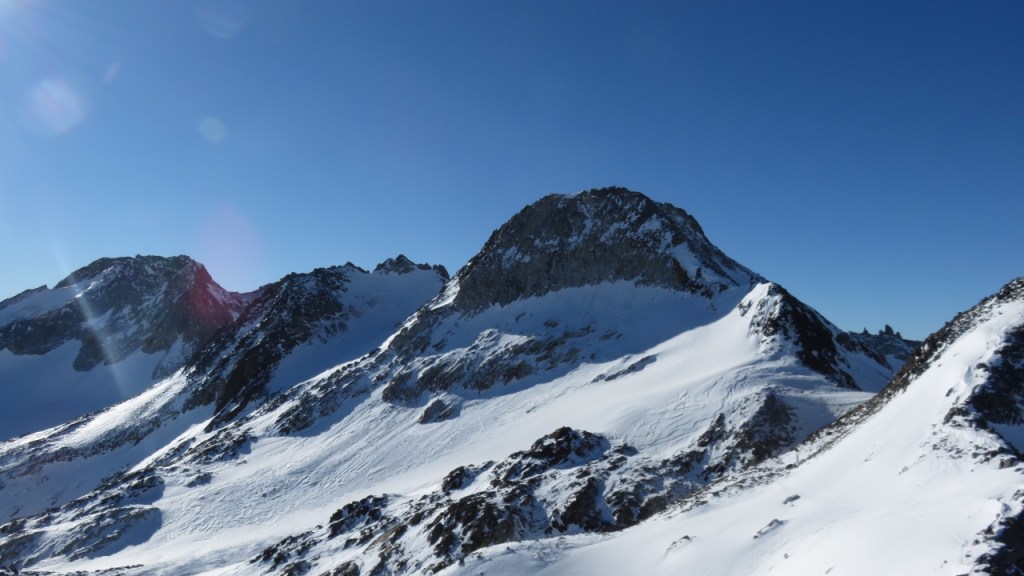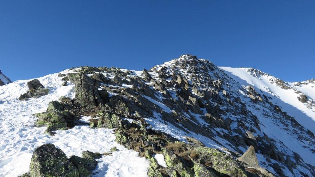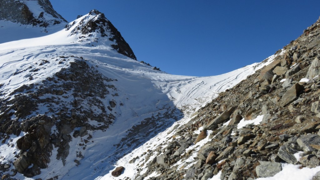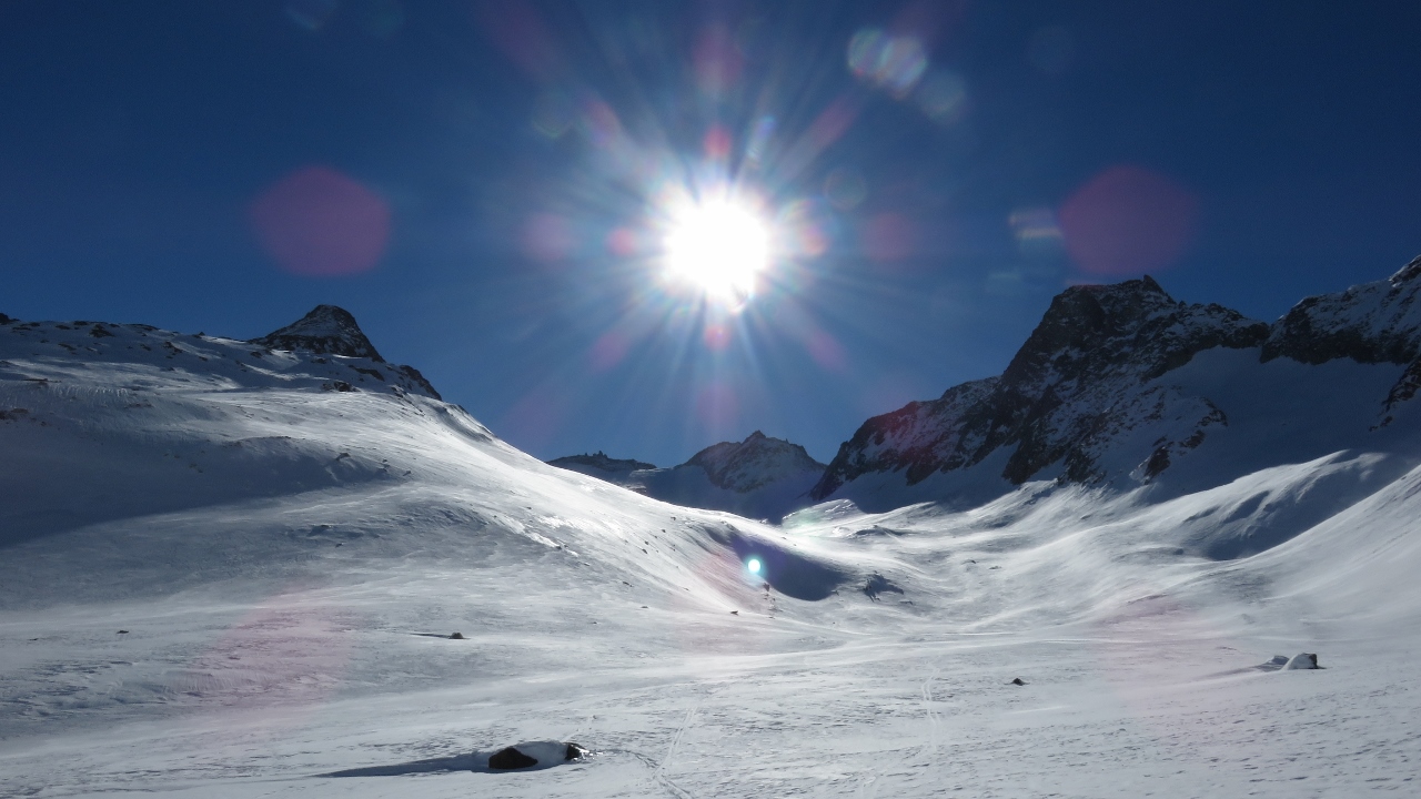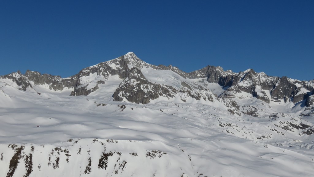 Dass ich schneemässig nicht die beste Wahl für die heutige Tour getroffen habe, war schon wenige Minuten nachdem in Realp gestartet war. Nachdem ich zunächst etwas gezögert hatte, beschloss ich, den wunderbaren Tag trotzdem zu geniessen. So lief ich in das Witenwasserental hinein und auf den stark windbearbeiteten Hängen hinauf zum Rottällihorn. Die letzten Meter über den Grat musste ich die Skier tragen, da nicht genug Schnee auf den Felsen lag. Nach einigen Minuten Pause lief ich zu Fuss hinüber in den ziemlich abgeblasenen Leckipass. Auf der anderen Passseite musste ich einige Meter durch die Felsen absteigen, bevor ich die Skier anschnallen konnte. Kurz darauf düste ich genussvoll über den hart gepressten Schnee die breite Mulde des Muttengletschers hinab. Etwas oberhalb P.2329 montierte ich wieder die Felle und stieg, teils gegen starke Windböen ankämpfend, hinauf zu P.2759. Ein zweites Mal musste ich die Skier auf den Rucksack schnallen, damit ich den praktisch schneefreien Grat zu Skigipfel des Stotzigen Firsten erreichen konnte. Für die Abfahrt wählte ich die Nordflanke, die ich über den Plänggetliboden direkt nach Deierli und die Brücke bei Chalt Herbrig abfuhr – die letzten ca. 300 Höhenmeter sogar durch netten Pulverschnee! Nach einem kurzen Gegenanstieg düste ich die Passstrasse hinab ins Tal. Trotz den weniger guten Schnees eine lohnende Tour!