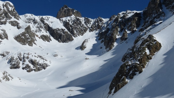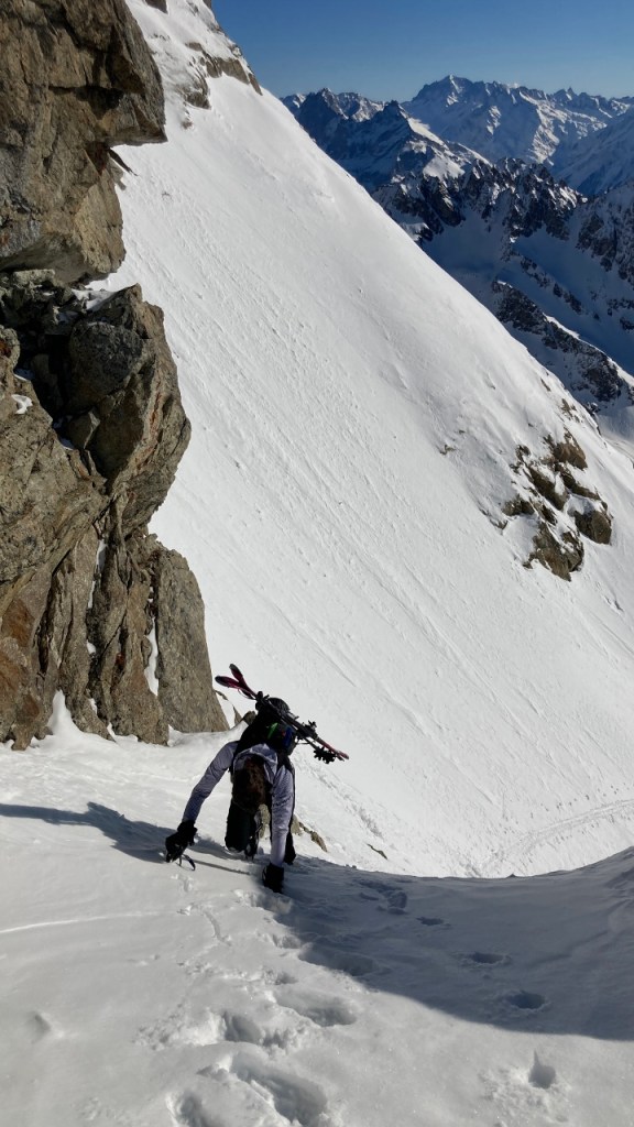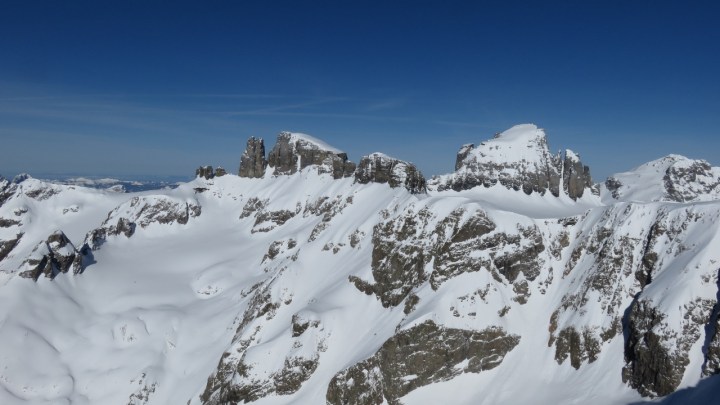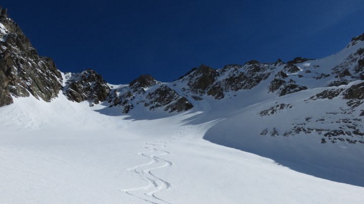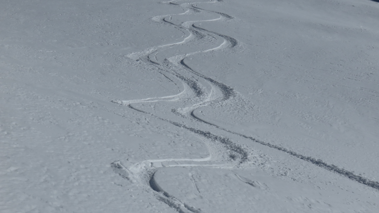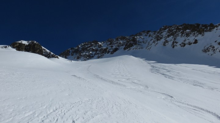 Das Couloir war nicht besonders angenehm zu fahren: wenige Zentimeter Schnee auf vereisten Platten. Aber den Rest der Abfahrt über den Rossfirn und die Rossplangg hinunter jubelten wir bei jedem Schwung, den wir durch den perfekten Schnee zogen. Einfach wieder ein herrliches Erlebnis im Meiental! Vielen Dank an M.Z. für die wunderbare Tour!